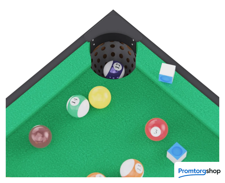 | Размер игрового поля | 104.8*58 см. Ширина боковых панелей 12 мм. Ширина лузы: 70 мм |