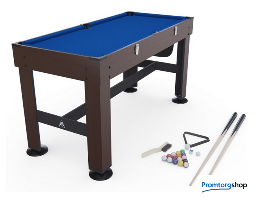 | Комплектация | бита (2 шт.), сетка, кий (2 шт.), треугольник, щетка, мяч (футбол — 2 шт., настольный теннис — 2 шт.), шайба (2 шт.), ракетка (2 шт.), шар (16 шт.), мел (2 шт.) |