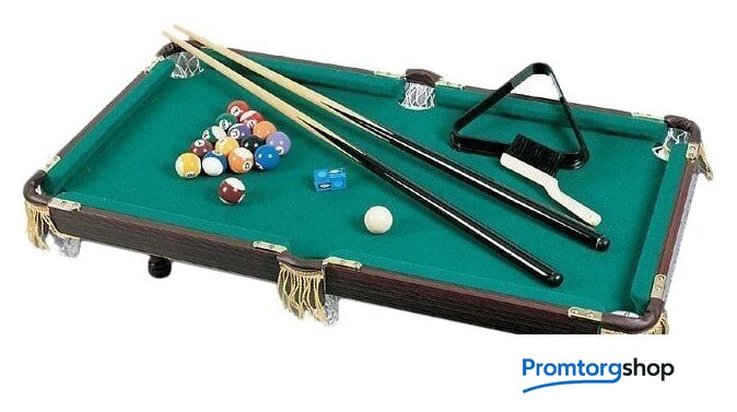 | Комплектация | 2 кия, набор шаров, треугольник, щетка для сукна, мелки |