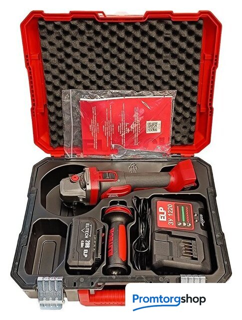 | Комплект поставки | - Аккумуляторная шлифмашина;- 1 аккумулятор 20V 4.0 Ah;- Зарядное устройство ЗУ 1220;- Кожух 125 мм;- Ключ;- Дополнительная рукоятка;- Инструкция;- Кейс. |