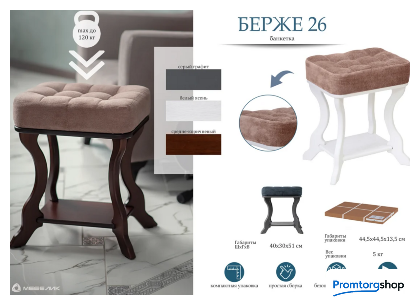 | Тип | Банкетка — незаменимая вещь для дома, для дачи, для общественных мест, для школы и для кабинета. Не занимая много места, она всегда полезна и всегда удобно, когда она под рукой. В прихожей уместна будет банкетка для обуви с сиденьем, или просто банкетка с сиденьем. Банкетка мягкая всегда удобнее, чем банкетка в стиле лофт с твердой поверхностью. Банкетка–лавка с мягким сиденьем всегда компактнее, чем пуфик. Поэтому, если вы стеснены в площади, лучше отдать предпочтение именно банкетке. |