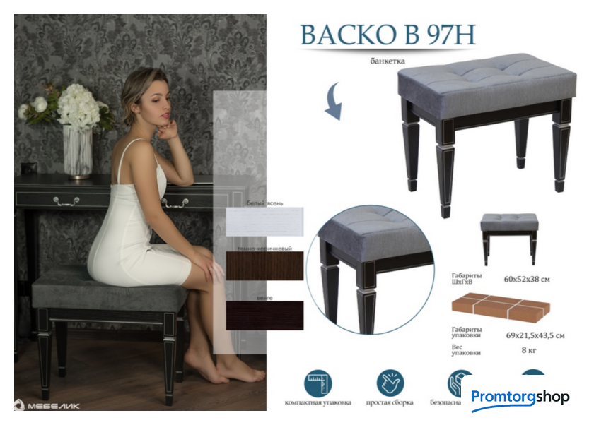 | Тип | Классическая банкета в интерьер спальни, прихожей, будуара. Конусообразные ножки с лаконичной гравировкой выполнены из массива бука. Все гравировки покрыты патиной в цвет серебра, что еще больше подчеркивает их рисунок. Поверхности царг шпонированы натуральным дубом, плотная толстая подушка. Надежная классическая конструкция, компактная упаковка, выверенные габаритные размеры. Предметы интерьера серии "Васко" консоль, журнальный стол, зеркало, банкетка, костюмная вешалка отлично дополняют друг друга, создавая интерьер в стиле неоклассика. Банкетка - незаменимая вещь для дома, для дачи, для общественных мест, для школы и для кабинета. Не занимая много места, она всегда полезна и всегда удобно, когда она под рукой. |