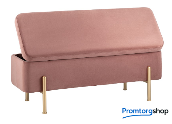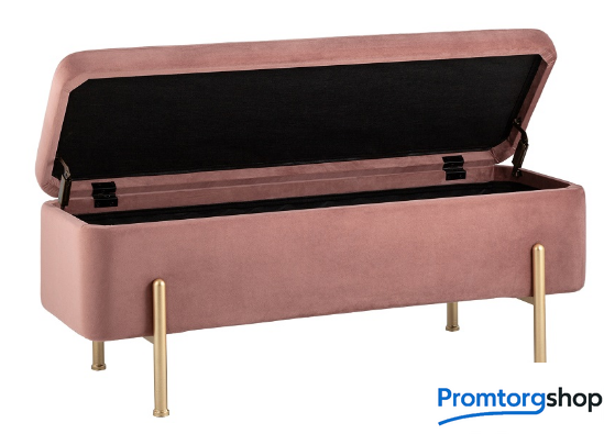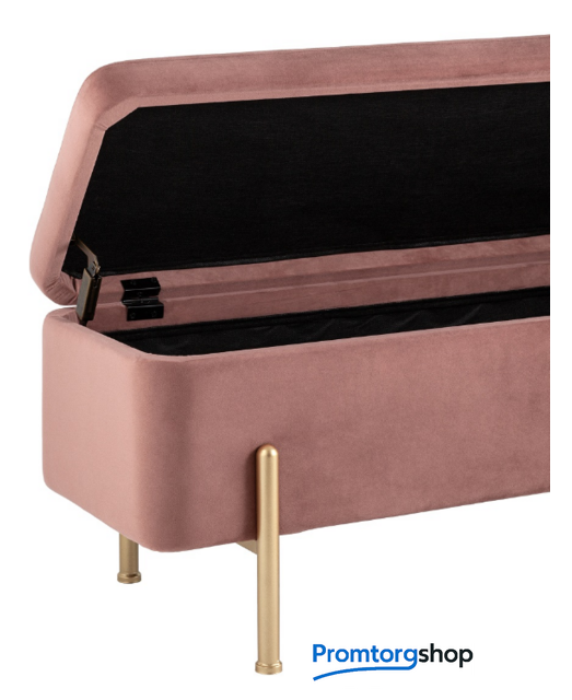 | Тип | Стильная модель банкетки в обивке из мягкого велюра прекрасно дополнит интерьер спальни или прихожей. Изящные ножки выполнены из металла в золотом цвете. Под сиденьем имеется ящик для хранения необходимых вещей. На ножках предусмотрены мягкие накладки, которые предотвращают повреждения напольного покрытия. |