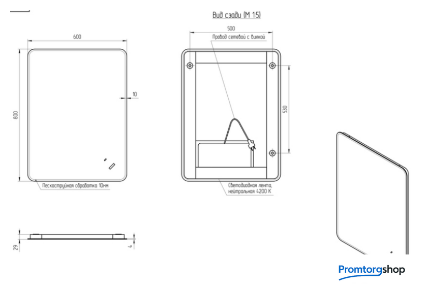 | Материал | пластик (ударопрочный). Форма зеркала прямоугольная |
