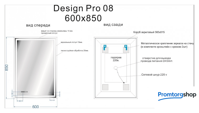 | Цвет | зеркальный |