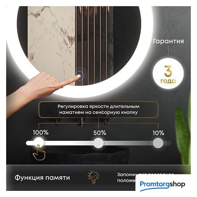 | Функциональные особенности | сенсорное управление, регулировка яркости освещения |