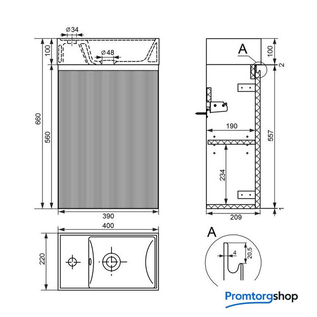 тумба под умывальник, напольная/подвесная установка, ширина: 40 см