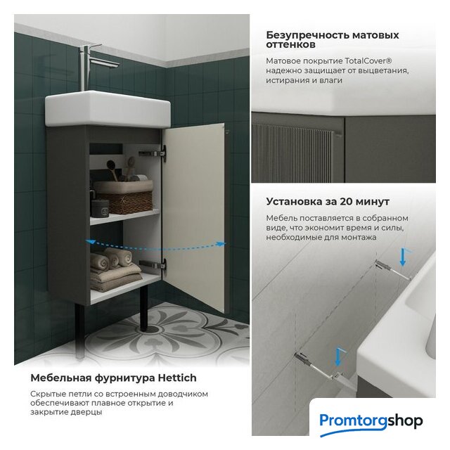 | Функциональные особенности | доводчики, регулировка полок по высоте, возможность снятия полок, расположение петель справа, тумба в собранном виде |