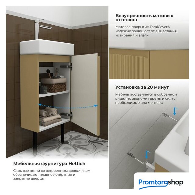 | Функциональные особенности | доводчики, регулировка полок по высоте, возможность снятия полок, расположение петель справа, тумба в собранном виде |