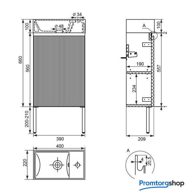 тумба под умывальник, напольная/подвесная установка, ширина: 40 см