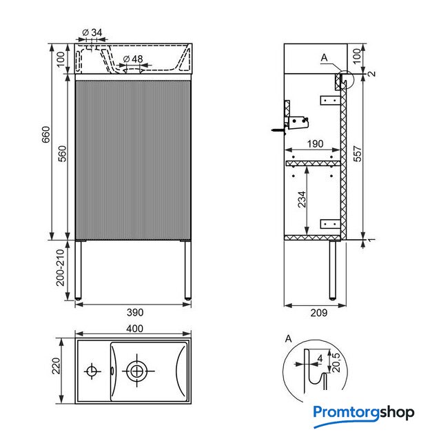 тумба под умывальник, напольная/подвесная установка, ширина: 40 см