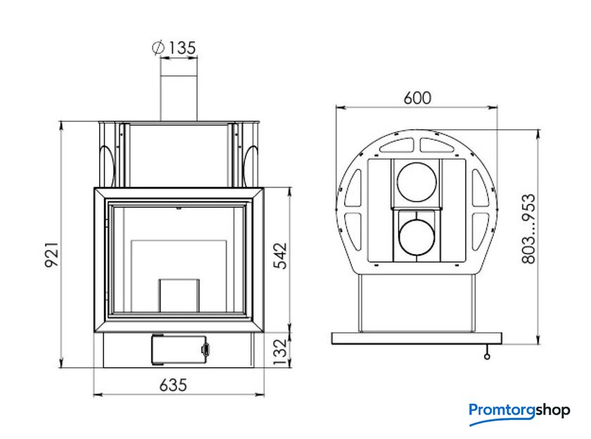 Диаметр дымохода | 13.5 см, Подключение дымохода вертикально либо горизонтально в левую/правую сторону |