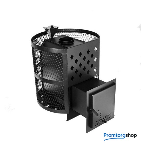 | Тип печи | дровяная (дерево, прессованные брикеты). Длина поленьев 30 см, Печь-сетка съемная закрытая каменка (сталь 09г2с 4мм), объем которой составляет 11л.заливная воронка из нержавеющей стали AISI 430 |