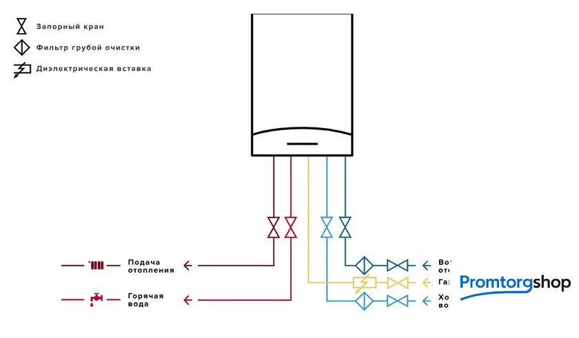 | Тип | двухконтурный. Патрубок подключения газа 3/4 " Патрубок подключения контура отопления 3/4 " Патрубок подключения контура ГВС 1/2 " |