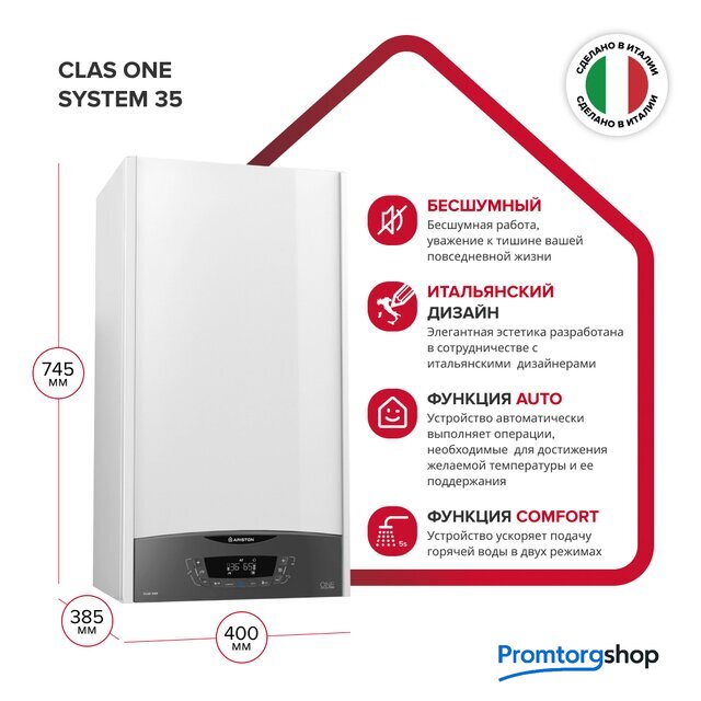 | Вид | газовый котел. Циркуляционный насос, 3-х ходовый и датчик бойлера в комплекте. Вентиляция, «горячий старт». Закрытая камера сгорания. Основной теплообменник из нержавеющей стали. Бесшумная работа благодаря усовершенствованному шумоглушителю забора воздуха и звукоизоляционным панелям, модулируемым насосу и вентилятору. Функция «Auto» (погодозависимое регулирование) - обеспечивает точное поддержание заданной температуры в помещении, при наличии уличного и комнатного датчика. Функция «Комфорт» - ускоренная подача горячей воды в течение 5 секунд (при подключении внешнего бойлера). Точная адаптация котла к системе отопления: глубина регулирования мощности 1:10. Премиальный дизайн. Сенсорная панель управления. Матричный дисплей с подсветкой. Русифицированное меню. Интуитивно-понятное управление. Подключение единой выносной многофункциональной панели управления Sensys. Единый протокол связи BusBridgeNet повышает эффективность и облегчает подключение других компонентов в единую систему отопления и ГВС. Контроль от 1 до 6 температурных зон. Производится в Италии из лучших европейских комплектующих. Долговечность за счет снижения количества циклов включения/выключения котла. Модулируемые вентилятор и насос. Повышенная производительность контура ГВС благодаря увеличенному теплообменнику. Встроенный расширительный бак. Встроенный циркуляционный насос. Встроенный 3-х ходовой клапан. Новый теплообменник XtraTech из высококачественной нержавеющей стали. Увеличенное сечение труб теплообменника (+142% в сравнении с предыдущей версией). Система автоматической адаптации к параметрам газа. Перевод на сжиженный газ без дополнительных аксессуаров. Класс эффективности А+ при подключении уличного и комнатного датчика. Страна производства: Италия |