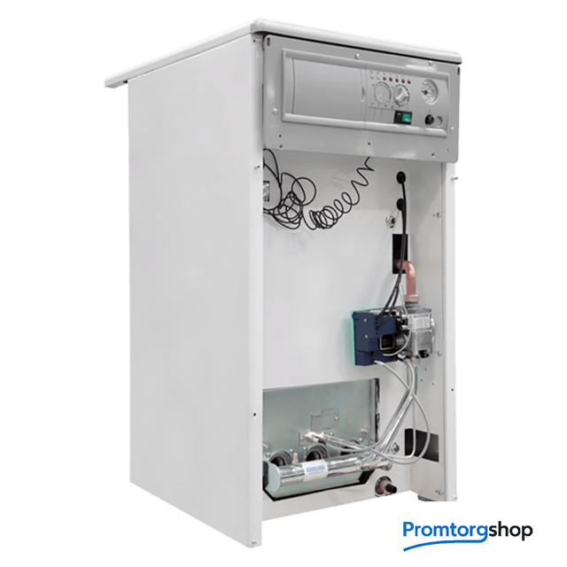 Площадь обогрева | 360 м2. Описание: Инжекционная горелка из нержавеющей стали Электронный розжиг и контроль наличия пламени по току ионизации Чугунный секционный теплообменник Предусмотрено подключение к электронной плате для управления внешним бойлером (опция), а также подключение к электронной плате для управления тремя зонами отопления (опция) Панель управления с возможностью подключения циркуляционного насоса контура отопления, комнатного термостата и реле давления воды Термостат безопасности Термостат тяги |