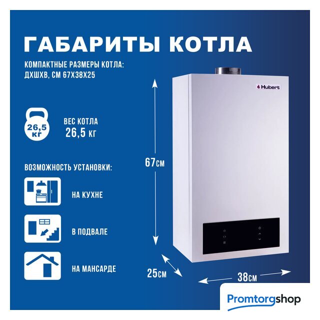 Вид | газовый конвекционный. Патрубок подключения газа 1/2 ". Патрубок подключения контура отопления 3/4 ". Патрубок подключения контура ГВС 1/2 ". Диаметр дымохода 60/100 мм |