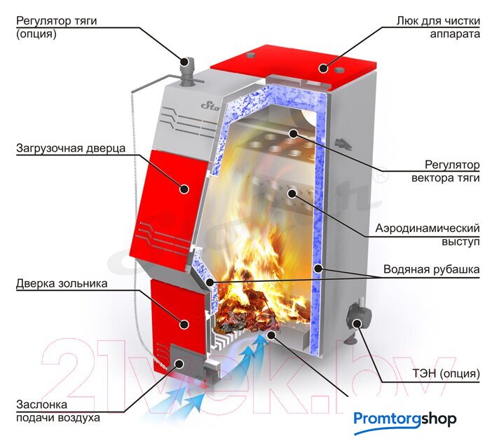 Вид | твердотопливный. Дополнительные опции возможность установки ТЭНа, энергонезависимый. Диаметр дымохода 130 мм Патрубок подключения контура отопления 1 1/4" Патрубок подключения контура ГВС 1/2 " |