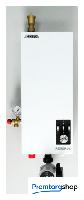 | Мощность обогрева | 3 кВт. Особенности электрического котла Зота Резерв Сет: Капиллярный термостат с инерцией не более 3 °С для точного контроля температуры; Бесшумная работа силового блока благодаря применению электромагнитных реле в коммутирующей схеме; Возможность подключения внешнего комнатного термостата для управления работой электрокотла по расписанию; Три ступени мощности для эффективного энергопотребления; Теплоизолированный корпус для обеспечения безопасной эксплуатации; Порошковая покраска всех элементов, повышающая стойкость к внешним воздействиям; Регулировка температуры нагрева воды в пределах от +25 °С до +85 °С; Датчик перегрева теплоносителя активируется при температуре +95 °С; Использование электромагнитного контактора в цепи работы котла обеспечивает дополнительную безопасность. |