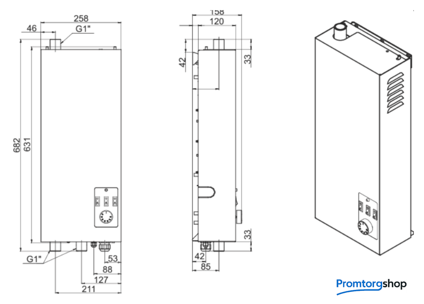 | Вид | электрический. Фильтрация воды, автоматический воздухоотводчик, предохранительный клапан. Патрубок подключения контура отопления 1 " |
