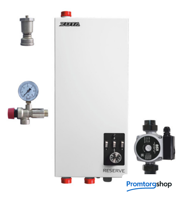 | Мощность обогрева | 9 кВт. Особенности электрического котла Зота Резерв Сет: Капиллярный термостат с инерцией не более 3 °С для точного контроля температуры; Бесшумная работа силового блока благодаря применению электромагнитных реле в коммутирующей схеме; Возможность подключения внешнего комнатного термостата для управления работой электрокотла по расписанию; Три ступени мощности для эффективного энергопотребления; Теплоизолированный корпус для обеспечения безопасной эксплуатации; Порошковая покраска всех элементов, повышающая стойкость к внешним воздействиям; Регулировка температуры нагрева воды в пределах от +25 °С до +85 °С; Датчик перегрева теплоносителя активируется при температуре +95 °С; Использование электромагнитного контактора в цепи работы котла обеспечивает дополнительную безопасность. |