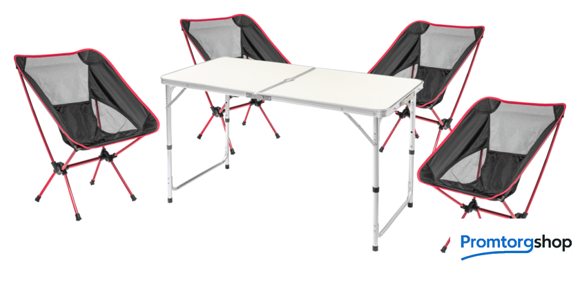 | Тип | комплект складной мебели стол (1 шт.), кресло (4 шт.). в поход/на рыбалку. Форма поставки в разобранном виде |