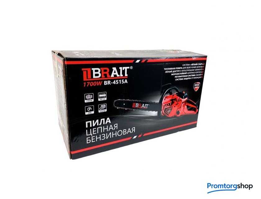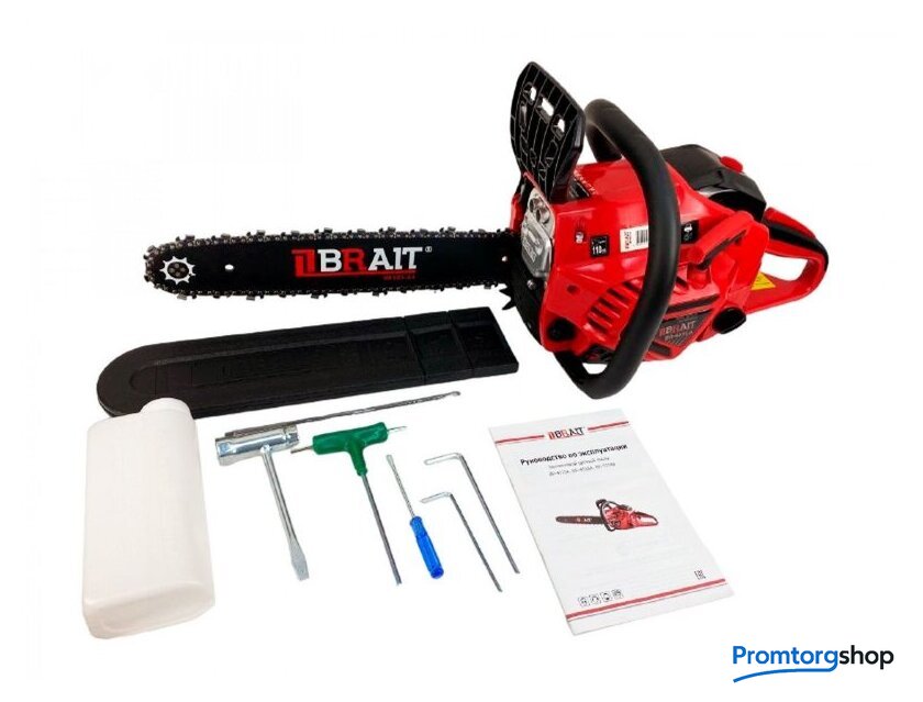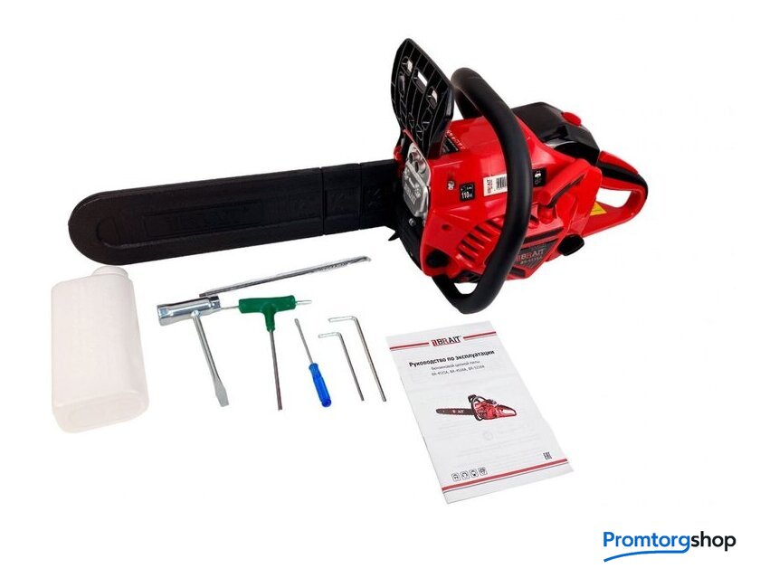 Комплект поставки | - Пила цепная бензиновая 1 шт- Направляющая шина 1 шт- Емкость для топливной смеси 1 шт- Цепь пильная 1 шт- Инструкция по эксплуатации 1 шт- Тормоз цепи 1 шт- Комплект инструментов и принадлежностей |
