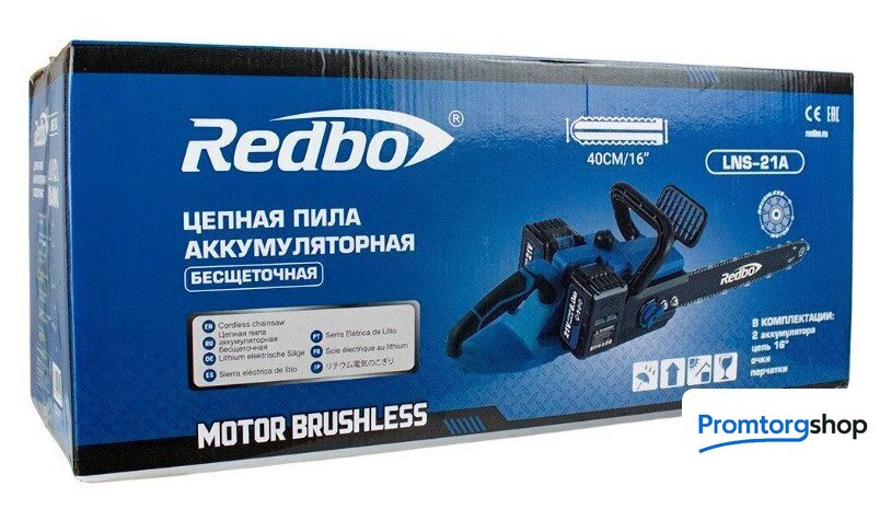| Комплект поставки | - Пила цепная аккумуляторная- Ключ накидной- Защитный кожух- Пильная шина- Цепь пильная- Аккумуляторная батарея - 2Зарядное устройство- Очки- Перчатки- Руководство по эксплуатации- Упаковка |