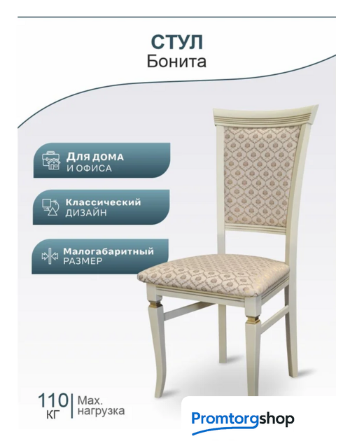 | Тип | стул. Форма поставки в разобранном виде. Стул «Бонита» — классический стул для создания обеденной группы в зонах столовой и кухни. Стул имеет настолько классические пропорции и внешний вид, что с первого дня станет неотъемлемой частью вашего обновленного интерьера. Каркас стула сделан из массива бука, сиденье и спинка имеют мягкие подушки, что делает даже продолжительное сидение на стуле комфортным. Стулья «Бонита» идеально подходят для создания обеденной группы в комплекте со столами «Жерар» и «Рифей». Страна производства: Россия |