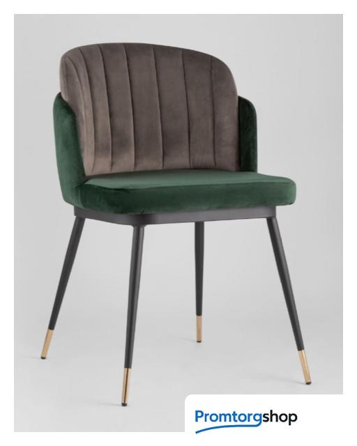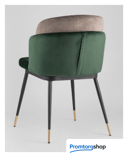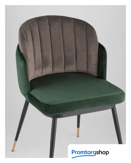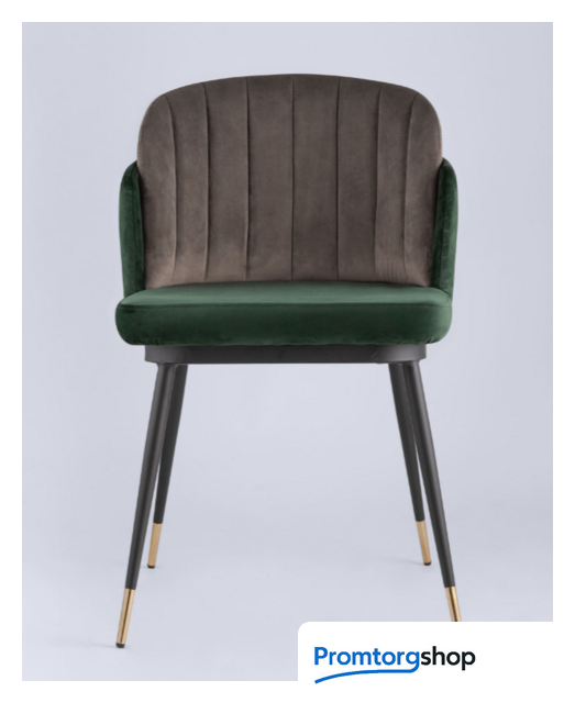 Тип | стул. Особенности: Мягкий двухцветный стул с обивкой из велюра. Надежная опора достигается благодаря металлическому каркасу и удобным устойчивым ножкам, красиво украшенным золотом. Спинка состоит из двух элементов, внутренняя часть с вертикальной строчкой. |