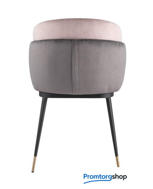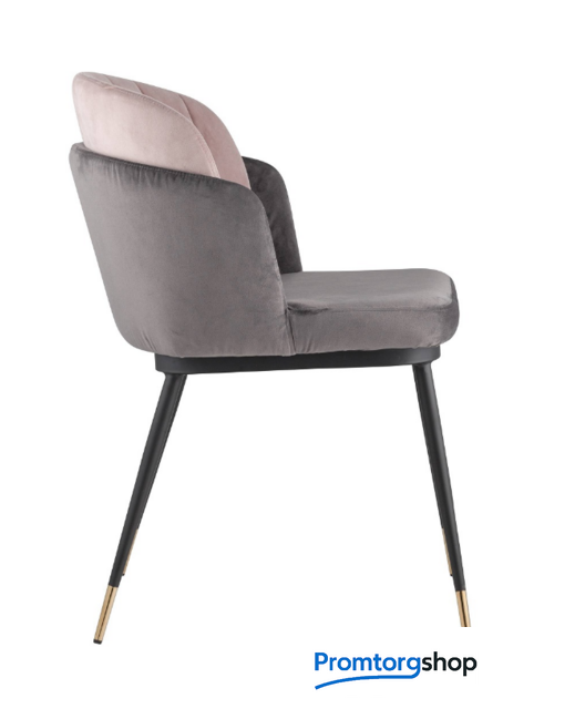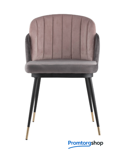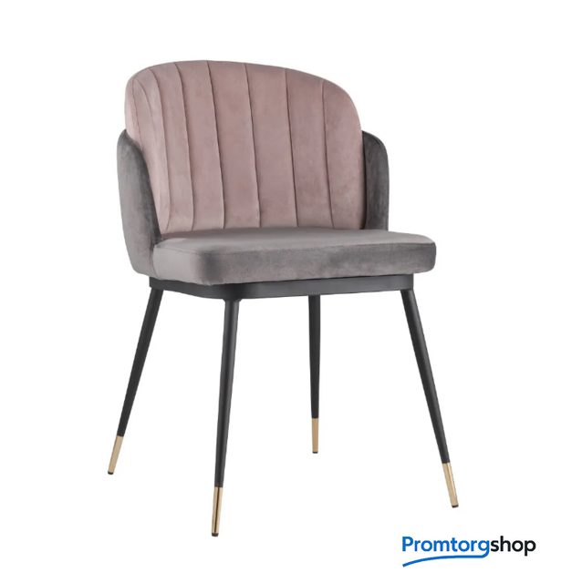 Тип | стул. Особенности: Мягкий двухцветный стул с обивкой из велюра. Надежная опора достигается благодаря металлическому каркасу и удобным устойчивым ножкам, красиво украшенным золотом. Спинка состоит из двух элементов, внутренняя часть с вертикальной строчкой. |