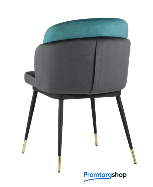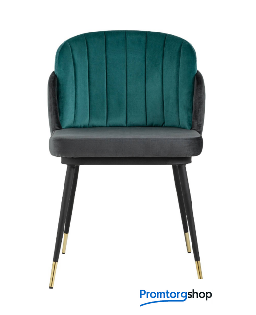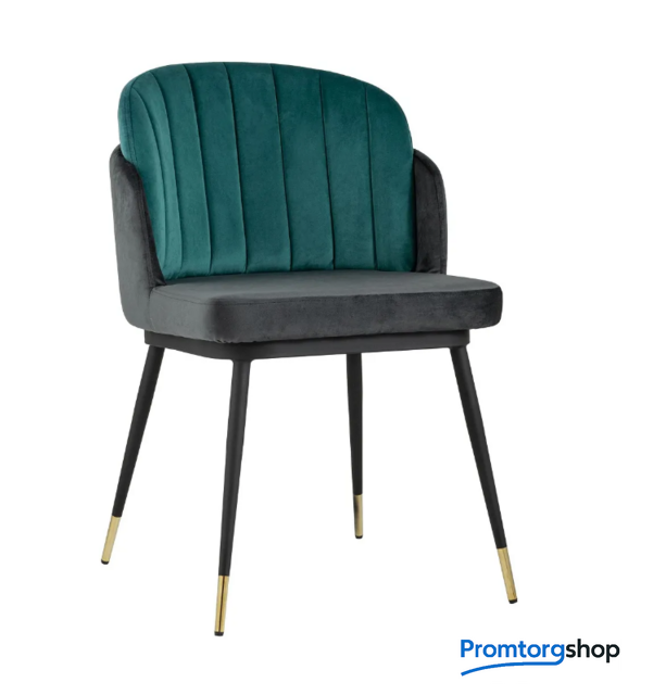 Тип | стул. Особенности: Мягкий двухцветный стул с обивкой из велюра. Надежная опора достигается благодаря металлическому каркасу и удобным устойчивым ножкам, красиво украшенным золотом. Спинка состоит из двух элементов, внутренняя часть с вертикальной строчкой. |