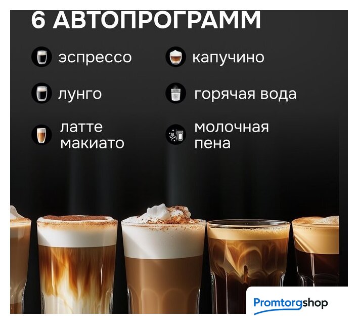 | Программы приготовления | эспрессо, лунго, капучино, латте макиато, горячее молоко |