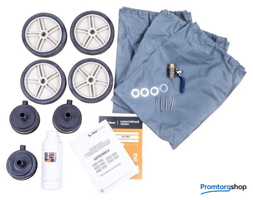 | Комплектация | - Компрессор- Колеса с комплектом для крепления - 4 шт.- Сапун масляного картера - 1 шт.- Воздушный фильтр - 3 шт.- Шаровый кран 1/2" - 1 шт.- U-образная ручка с комплектом для крепления ручки - 1 шт.- Масло компрессорное VDL 100 в бутылке - 1шт.- Инструкция по эксплуатации + Гарантийный талон |