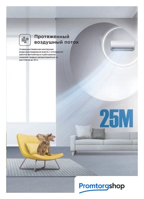 мощность охлаждения 2.78 кВт, мощность обогрева 3.37 кВт, обслуживаемая площадь 25 м²