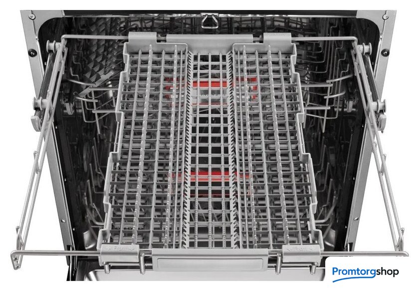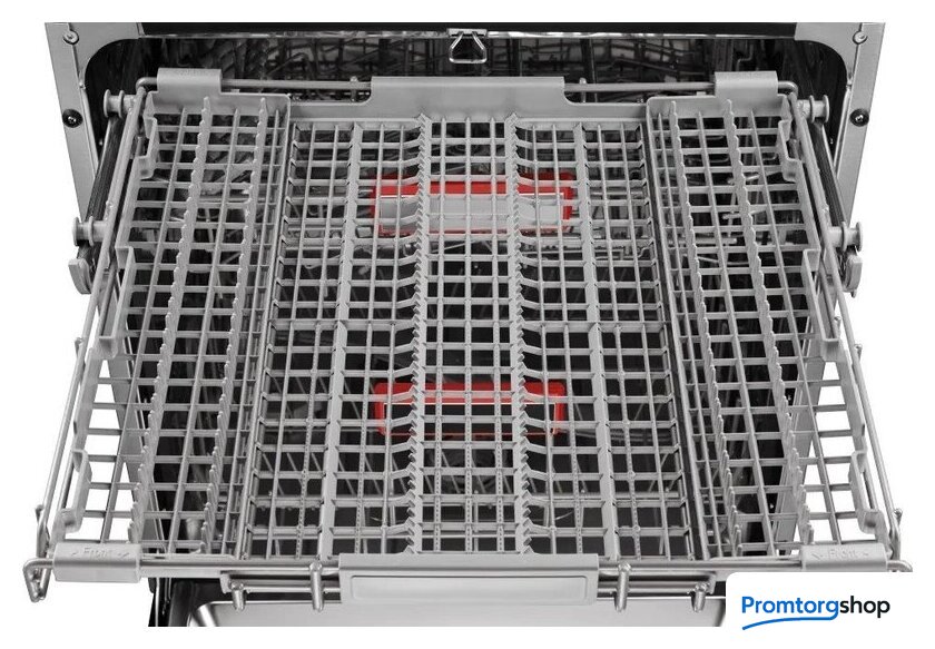 Особенности верхней корзины | регулировка положения по высоте, держатели для бокалов, складывающиеся держатели |