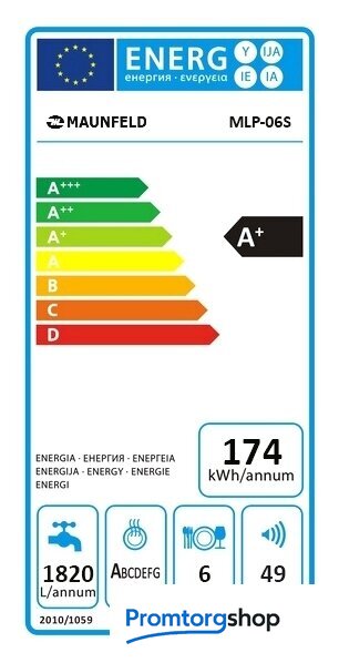 | Максимальная загрузка (комплекты посуды) | 6 |
