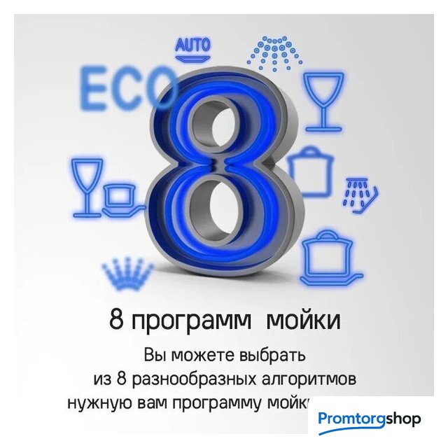 | Дополнительные опции | сокращение времени мойки, дополнительная сушка, половинная загрузка (экономия воды) |