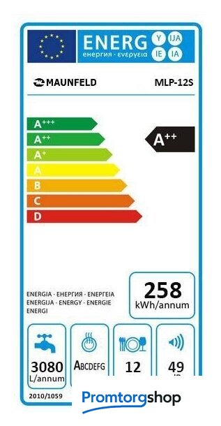 | Максимальная загрузка (комплекты посуды) | 12 |