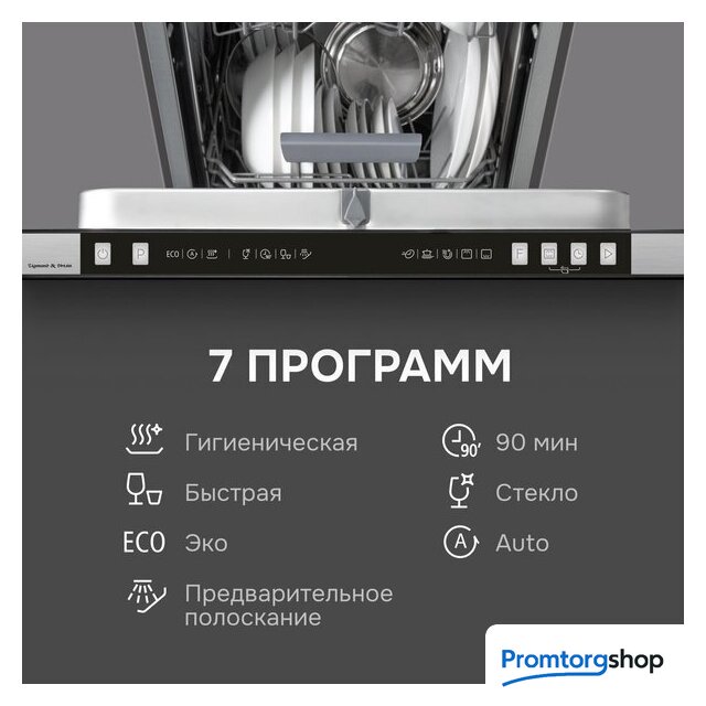 | Дополнительные опции | сокращение времени мойки, дополнительная сушка, усиление интенсивности мойки (гигиеническая мойка), половинная загрузка (экономия воды) |