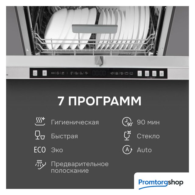 | Дополнительные опции | сокращение времени мойки, дополнительная сушка, усиление интенсивности мойки (гигиеническая мойка), половинная загрузка (экономия воды) |