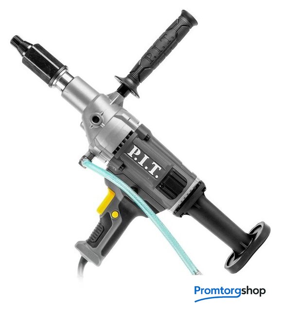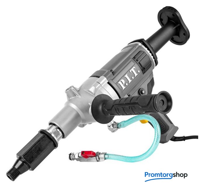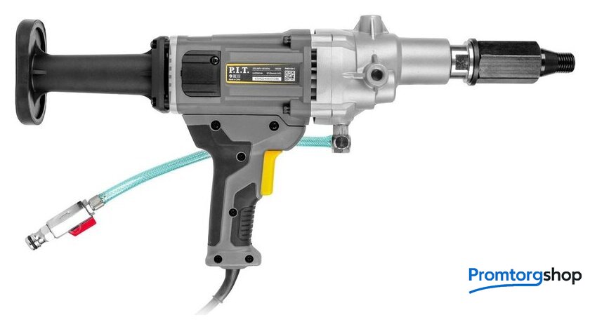 | Комплектация | - Дрель алмазного сверления- Упор плечевой- Рукоятка дополнительная- Шланг подачи воды с коннектером (2,5 м)- Резьбовой адаптер- Ключ шестигранный- Руководство по эксплуатации- Коробка |