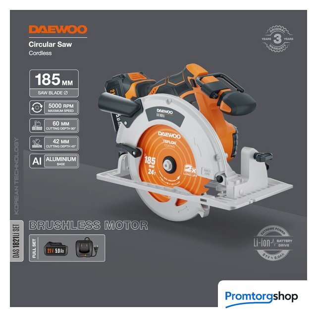 Комплектация | - Циркулярная пила - 1 шт.- Зарядное устройство - 1 шт.- Аккумулятор 5,0 Ач - 1 шт.- Пильный диск - 1 шт.- Шестигранный ключ - 1 шт.- Параллельная направляющая - 1 шт.- Адаптер подключения пылесоса - 1 шт.- Руководство по эксплуатации- Коробка |