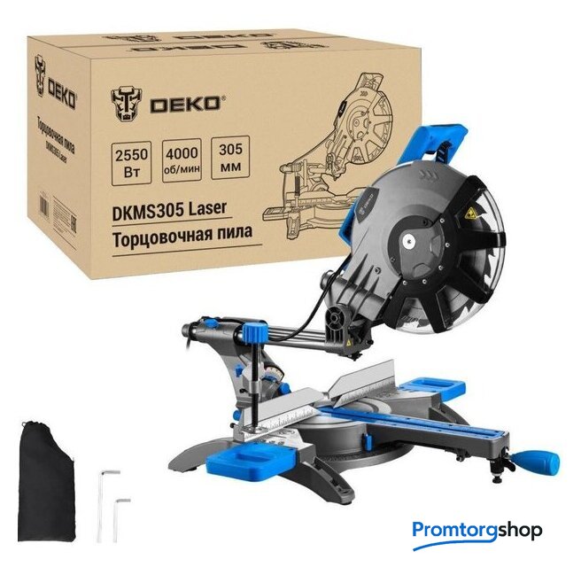 Комплектация | - Торцовочная пила - 1 шт.- Диск пильный (установлен) - 1 шт.- Струбцина - 1 шт.- Удлинитель стола - 2 шт.- Пылесборник - 1 шт.- Шестигранный ключ - 2 шт.- Угольные щетки - 2 шт.- Руководство по эксплуатации- Коробка |