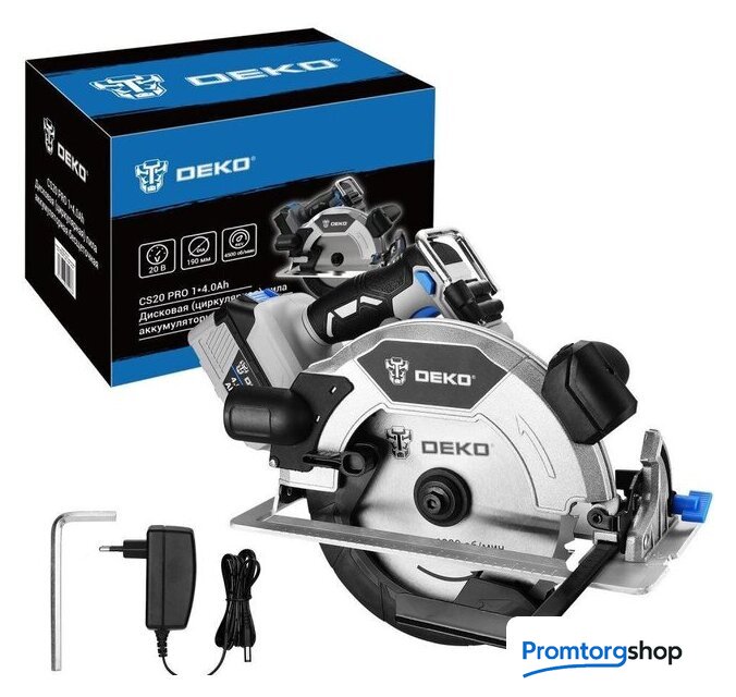 Комплектация | - Циркулярная пила – 1 шт.- Распиловочный диск - 1 шт .- Аккумулятор – 1 шт.- Зарядное устройство – 1 шт .- Параллельный упор – 1 шт .- Шестигранный ключ – 1 шт .- Руководство по эксплуатации- Коробка |