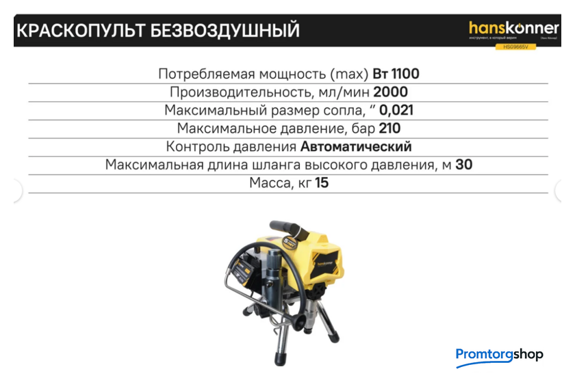 Мощность | 1100 Вт. Окрасочный аппарат HSG9665V — надежный и продуктивный электроинструмент для нанесения лакокрасочных материалов без использования сжатого воздуха. Данная модель отличается электронной системой управления давлением SmartControl, что содействует качественному окрашиванию и дает возможность осуществлять интерьерную покраску. Для удобного регулирования продуктивности есть электронный дисплей. Дополнительный фильтр для очистки краски исключает частое засорение сопла. Надежный поршневой насос EndurPump в среднем служить в два раза дольше чем бытовые аналоги. Для долговечности электродвигателя применяется защита от перегрузки. Шланг для подачи краски длиной 15 м. Преимущества Hanskonner HSG9665V EndurPump надежный поршневой насос -срок службы в 2 раза дольше, чем у бытовых аппаратов. SmartControl электронная система управления давлением позволяет точно поддерживать заданные параметры, что улучшает качество покраски и однородность наносимого слоя материала. DigitalDisplay непрерывное отслеживание производительности и удобная регулировка. DoubleFilter дополнительный фильтр исключает частое засорение сопла. OvercurrentProtect защита от перегрузки. |