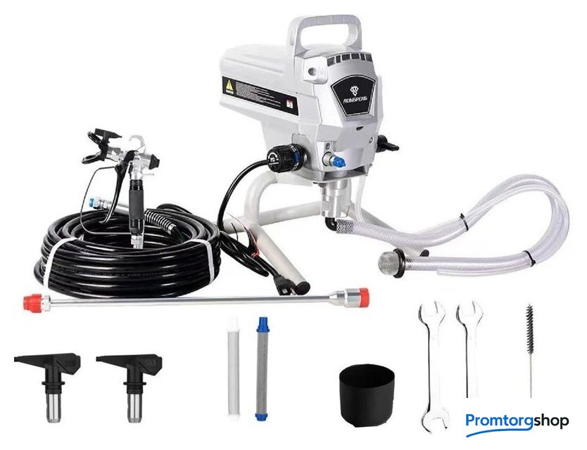Комплект поставки | - Окрасочныйаппарат–1 шт- Окрасочныйпистолет–1 шт- Шланг для подачи краски под давлением – 1 шт- Гаечный ключ – 2 шт- Стакан для краски–1 шт- Удлинитель - 1 шт- Щетка – 1 шт- Дополнительное сопло 513 (0.013") - 1 шт- Фильтр 150 mesh для сопла 513 - 1 шт- Дополнительное сопло 523 (0.023") - 1 шт- Фильтр 60 mesh для сопла 523 - 1 шт- Руководствопоэксплуатации–1 шт |