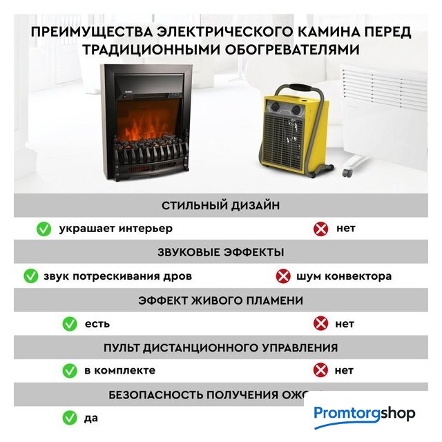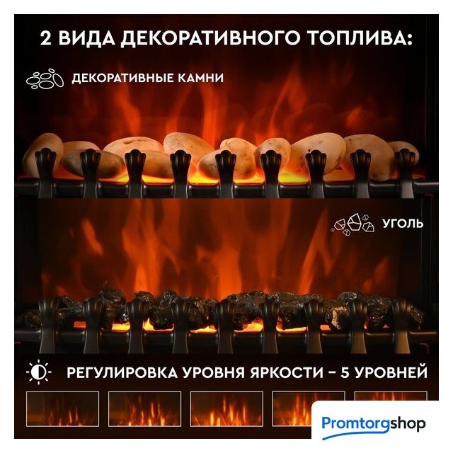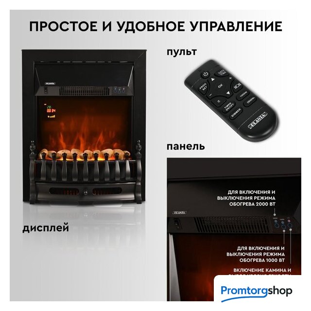 | Регулировка уровня мощности | режим имитации пламени + обогрев 1000 Вт и режим имитации пламени + обогрев 2000 Вт |