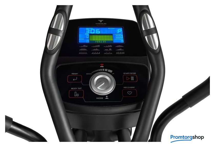 | Показания на дисплее | профиль программ, время, дистанция, скорость, калории, обороты в мин., уровни, пульс, ватты, фитнес-тест (Recovery) |