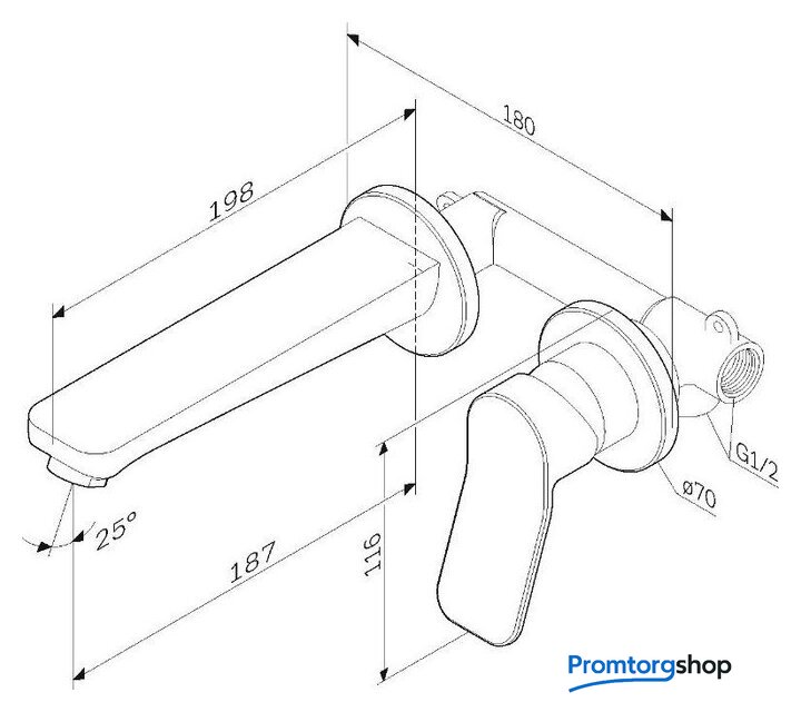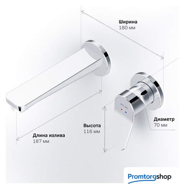 Длина (вылет) излива | 187 мм |